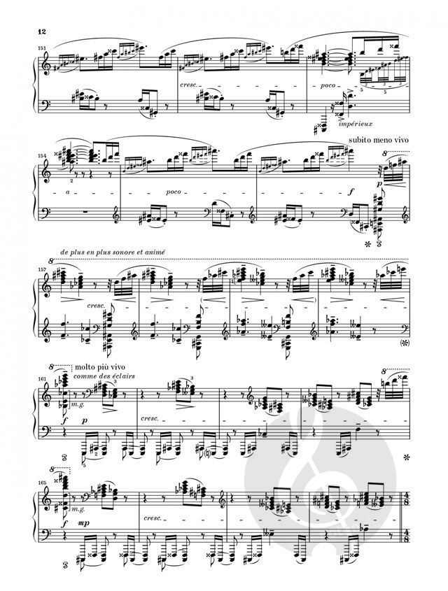 Skrjabin nannte seine 7. Sonate 'Weiße Messe' - dies weist auf die mystische Grundstimmung hin, die diese Klaviersonate prägt wie alle seine Spätwerke. Er wagt hier, sein Ideal eines 'Mysteriums' - eines Gesamtkunstwerks aus künstlerischen und theologisch-philosophischen Ideen - in Klang umzusetzen. Ziel ist seiner eigenen Aussage zufolge die Erhöhung des menschlichen Geistes. Nicht mehr die Sonatenhauptsatzform bildet das formale Gerüst, sondern die Idee der 'evolutionären Entwicklung aus dem Chaos bis hin zur Ekstase'. Für unsere Ausgabe konnte erstmals auch das Autograph, das sich heute in den USA in Privatbesitz befindet, ausgewertet werden.