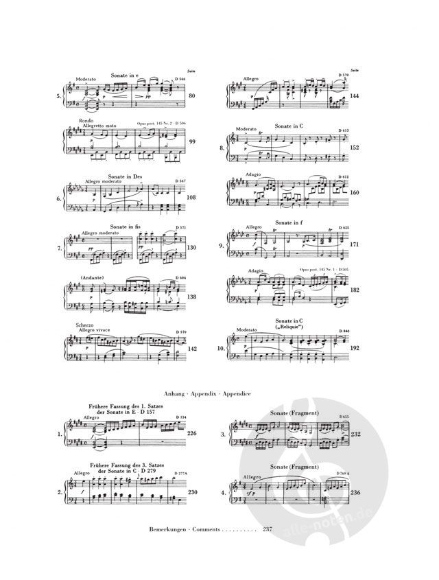 Schuberts 22 Klaviersonaten spiegeln den kompositorischen Weg, den dieser allzu früh verstorbene Komponist gegangen ist, sehr genau wider. Von den ersten Versuchen des Sechzehn- bis Neunzehnjährigen ist eine kontinuierliche Entwicklung festzustellen hin zu den fünf großen Sonaten, die er in den Jahren zwischen 1823 und 1826 komponierte und schließlich zu den drei kurz vor seinem Tod entstandenen, meisterlichen Sonaten, die ihn als Sonatenkomponisten fraglos auf eine Stufe mit Beethoven stellen. Die dreibändige Henle-Urtextausgabe der Klaviersonaten von Franz Schubert enthält in diesem Band I sieben Sonaten der beiden früheren Perioden, die alle mit bestimmten Opuszahlen bekannt geworden sind. Nur zwei sind zu Lebzeiten Schuberts erschienen. Eröffnet wird der Band mit der wohl bekanntesten Sonate dieser beiden Perioden, der A-dur-Sonate D 664, op. post. 120. Angesichts der weit auseinander liegenden Entstehungszeiten - 1817, 1823, 1825 - sind die Werke hinsichtlich ihrer Form und ihrem Ausdruck sehr unterschiedlich.