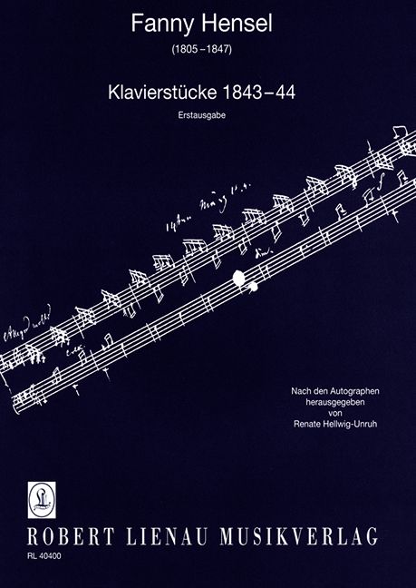 Fanny Hensel (1805-1847), die zu Lebzeiten in Bezug auf die Veröffentlichung ihrer Kompositionen zumeist hinter ihrem Bruder Felix Mendelssohn Bartholdy zurückstehen mußte, wird in den letzten Jahren zunehmend die ihr gebührende Anerkennung zuteil. Anläßlich des 150. Todesjahres der Komponistin präsentieren wir nach dem bereits erschienen Band RL 40390 eine weitere entdeckenswerte Erstveröffentlichung: 5 Klavierstücke aus den Jahren 1843 und 1844, deren lyrische Stimmführung, weite Melodiebögen und sensibler Einsatz der Harmonik komplexe Stimmungsbilder entstehen lassen. Die Ausgabe enthält sowohl ein ausführliches Vorwort als auch einen detaillierten kritischen Bericht.