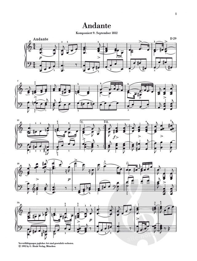 Dieser Band versammelt, chronologisch angeordnet, eine Auswahl zweihändiger Klavierstücke, die Schubert zwar als 'kleinere' Gelegenheitswerke schuf, die aber durchaus einen wichtigen Teil von Schuberts Gesamtwerk ausmachen und oft mit kühner Harmonik glänzen. Der Urtextband umfasst Kompositionen aus seiner Jugend bis kurz vor Schuberts Tod umfasst. Die ausgewählten Stücke sind, was ihre Schwierigkeit betrifft, breit gestreut (Schwierigkeitsgrad 3 bis 7) und bieten deshalb dem Fortgeschrittenen viele Möglichkeiten, sich Schuberts Klavierwerk zu nähern, und dem weniger Fortgeschrittenen einen guten Einstieg und lohnende Herausforderungen.