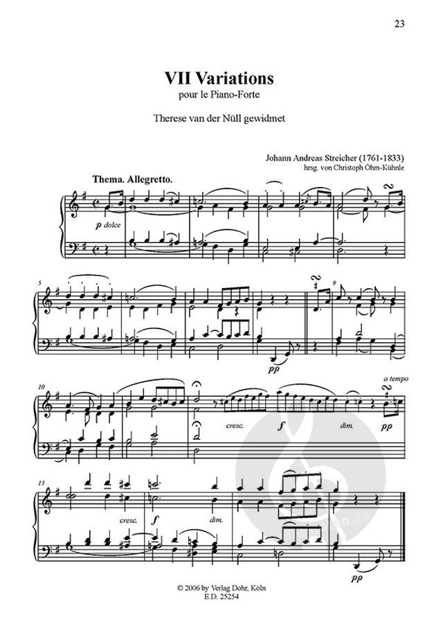 Reihe: Johann Andreas Streicher und Anna Maria Streicher - Gesamtausgabe Heft 4. Klavier; Partitur. Format: 37 S. - 29,7 x 21 cm.