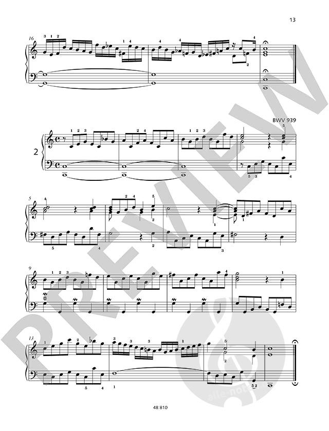 27 nach Schwierigkeitsgraden geordnete Stücke meist aus den Klavierbüchern für Anna Magdalena und Friedemann, dazu 6 kleine Präludien BWV 933-938
