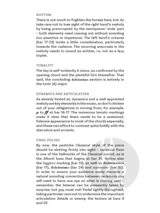 Know The Score ist ein Leitfaden zum schnelleren Lernen für fortgeschrittene Pianisten. Ursprünglich wurde es 2012 veröffentlicht und mit Blick auf die DipABRSM Quick Study konzipiert - ein zuvor ungespieltes, längeres Musikstück, für das vor einer bewerteten Aufführung 5 Minuten Vorbereitungszeit gegeben wurden. Die Musik entsprach in etwa dem Niveau der Note 6, wobei davon ausgegangen wurde, dass ein Spieler auf Diplomniveau in der Lage sein sollte, die Prüfung in dieser relativ kurzen Zeit zu bewältigen. Nachdem die Qualifikation kürzlich zurückgezogen wurde, ist es das Ziel dieser neu herausgegebenen Reihe, das Selbstvertrauen fortgeschrittener Spieler beim schnellen Lernen zu stärken. Zwei Annahmen werden hier gemacht - dass Sie ein Pianist auf Diplom-Niveau sind und dass Sie ein vernünftiges Maß an Fähigkeiten zum Vom-Blatt-Lesen haben. Wenn Sie jedoch weniger gut vom Blatt lesen können, werden Sie in diesem Buch vieles finden, was Ihnen helfen wird, sich zu verbessern und mehr Selbstvertrauen zu gewinnen. Das Buch ist auch für Lehrer interessant, die ein abwechslungsreiches, leicht zugängliches Repertoire und theoretische Inhalte suchen, um das längerfristige Lernen eines eifrigen Schülers der Klasse 6 zu unterstützen. Das Buch enthält 10 Originalstücke zum schnellen Lernen, von denen 4 mit Anleitungen versehen sind.