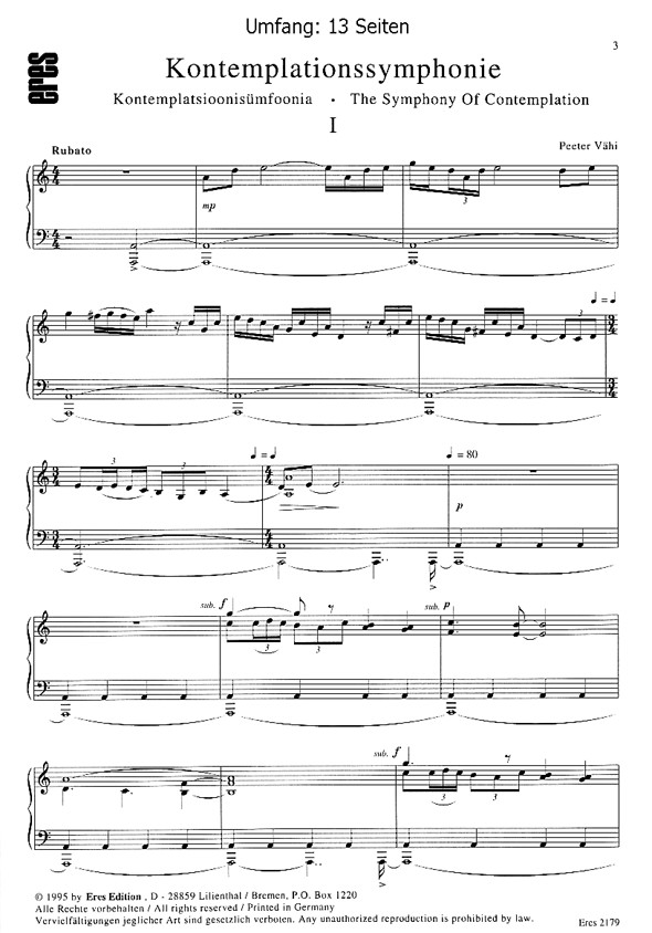 Drei Stücke für Klavier Inhalt:RubatoGalanteResolutoDie Musik Peeter Vähis vermittelt einzigartige Reize, diese kraftvollen Stücke sollten Sie spielen. Eres Estonia Edition