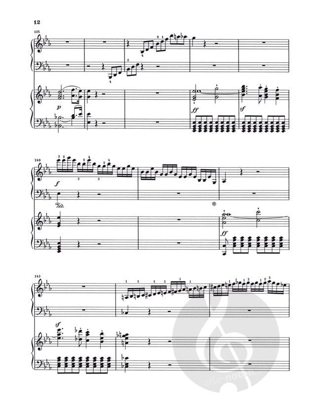 In einem Zeitraum von fünfundzwanzig Jahren komponierte Ludwig van Beethoven seine fünf großen Klavierkonzerte. Als der Komponist Ende 1800 seine ersten beiden Klavierkonzerte verkaufte, erwähnte er, er habe auch noch 'bessere', die er aber einstweilen für sich behalte bis er eine Reise mache. Gemeint war wohl eine Konzertreise mit dem soeben vollendeten dritten Klavierkonzert in c-moll. Es liegt hier im Klavierauszug vor. Die Ausgabe in gewohnter Urtext-Qualität ist für den praktischen Gebrauch eingerichtet und basiert auf der Beethoven-Gesamtausgabe. Als Vorlage diente das Autograph Beethovens. Das ausführliche Vorwort des Herausgebers dieser Ausgabe - des Beethoven-Forschers Hans-Werner Küthen - komplettiert mit wertvollen Hinweisen zur Edition diesen Notenband.