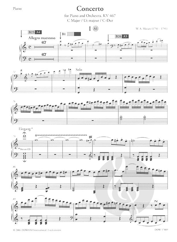 Solostimme und Klavierauszug mit Playalong-CD(s). Mit der vorliegenden Ausgabe präsentieren wir Ihnen das Klavierkonzert KV 467 in C-Dur von Wolfgang Amadeus Mozart. Es gehört zu den beliebtesten Mozart-Konzerten; der fliessend ruhige zweite Satz dieses Werkes ist besonders bekannt. Unsere Ausgabe ermöglicht es Ihnen, das Werk systematisch und in drei verschiedenen Tempi mit professioneller Begleitung zu erarbeiten.