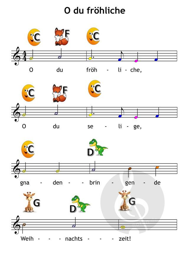Kinder lieben Weihnachtslieder. Umso schöner ist es, wenn schon Kinder ab 4-Jahren an Heiligabend einfache Weihnachtslieder spielen können- Diese zu Erlernen ist nach dem Konzept "Alle Farben der Musik", in dem Musik durch Farben und Bilder vermittelt werden, kinderleicht.
