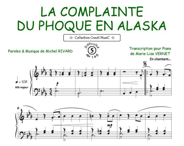 Diese Partitur stammt aus der Sammlung CrocK'MusiC, die aus Transkriptionen französischer Lieder für das Klavier besteht, begleitet von ihren Texten.