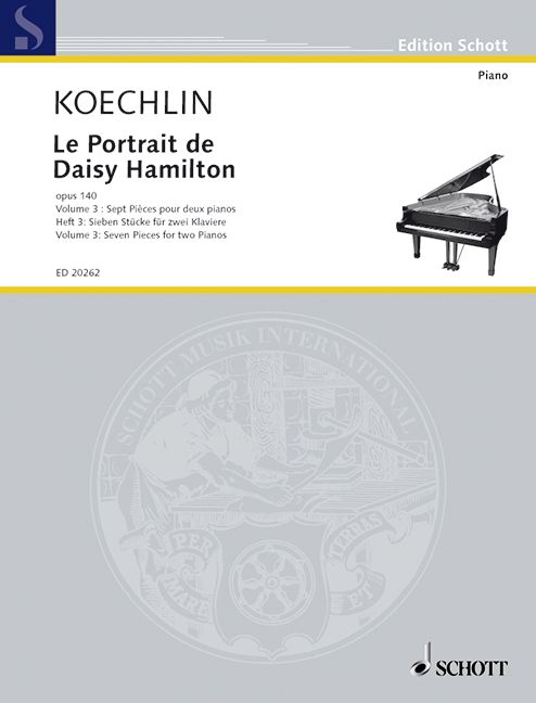 Endlich ist die Musik von Charles Koechlin kein Geheimtipp mehr, sondern wird sowohl für den Konzertsaal als auch die CD entdeckt! Mit unserer Ausgabe präsentieren wir nun eine weithin noch unbekannte Facette seines Schaffens. Denn kaum jemand weiss, dass sich Koechlin in bereits fortgeschrittenem Alter dem Film zuwandte. Obwohl Koechlin bewusst war, dass keine Aussicht auf filmische Umsetzung bestand, entwarf er sogar ein Filmszenario in 20 Szenen, in dem er selbst in einer Doppelrolle erscheinen sollte! Im Alter von 66 Jahren sah er in einem Pariser Filmtheater die Schauspielerin Lilian Harvey als Prinzessin Marie-Christine in Princesse ? vos ordres. Er war so verzaubert, dass er für sie die kleinen Stücke Le Portrait de Daisy Hamilton komponierte - hinreissende Miniaturen, die nicht als Filmmusik geschrieben, sondern durch Filmerlebnisse ausgelöst wurden. Von den unvollendet gebliebenen, auf zwei bis vier Linien notierten Kompositionen Le Portrait de Daisy Hamilton sind bei Schott bereits zwei Hefte erschienen, nun publizieren wir erstmals einen Band mit Stücken für zwei Klaviere. Weitere Hefte in anderen Instrumentierungen werden folgen. Mit den insgesamt sieben geplanten Heften Le Portrait de Daisy Hamilton werden Charles Koechlins letzte noch unveröffentlichte Werke aus dem Umfeld des Films endlich für die Nachwelt zugänglich.