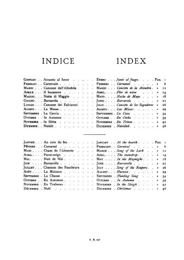 Contents: Autumn Song - Barcarolle - By the Hearth - Carnival - Christmas - Harvest Song - Hunter's Song - Sleigh Ride - Snowdrop - Song of the Lark - Song of the Reaper - Starlit Night.