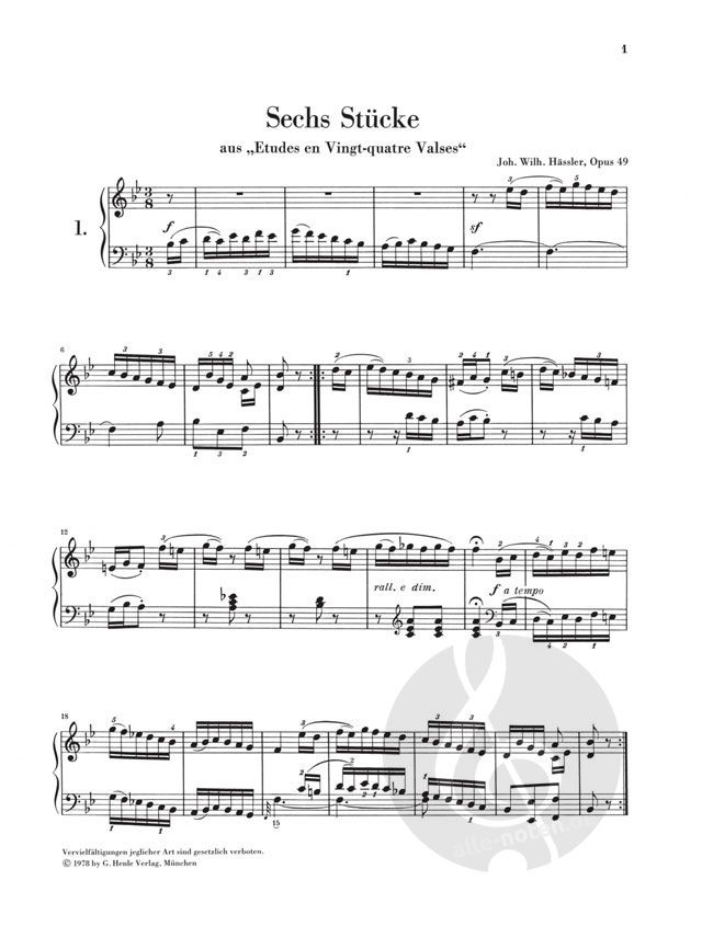 Johann Wilhelm Hässler: 6 Stücke aus 'Etudes en Vingt-quatre Valses' op. 49
