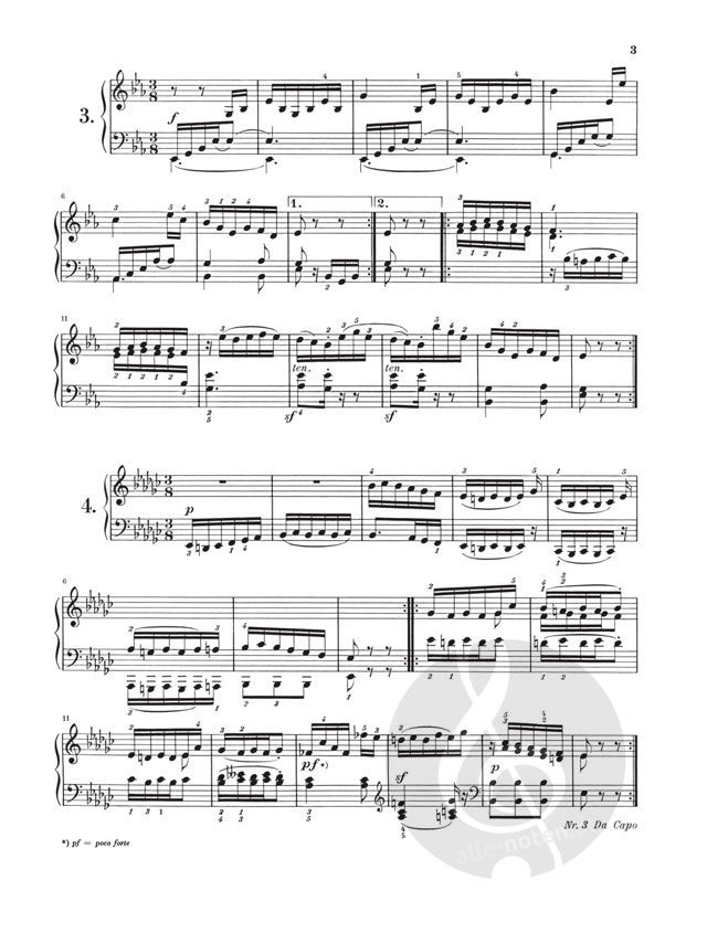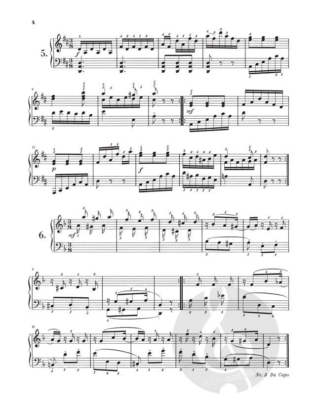 Der Band beinhaltet: Hässler, J. W.: 6 Stücke aus 'Etudes en Vingt-quatre Valses' op. 49 Mozart, W.A.: Sonatensatz g-moll KV 312 (590d) Mozart, W.A.: Marcia C-dur KV 408/1 (383e) Beethoven, L. v.: Menuett Es-dur WoO 82 Beethoven, L. v.: Klavierstück für Elise a-moll WoO 59 Schubert, F.: Allegretto c-moll D 915 Schubert, F.: Moment musical f-moll op. 94,3 D 780 Schubert, F.: Moment musical As-dur op. 94,6 D 780 Mendelssohn Bartholdy, F.: Lied ohne Worte E-dur op. 30,3 Kirchner, T.: 6 Präludien aus op. 65 Tschaikowsky, P. I.: 3 Stücke aus 'Kinderalbum op. 39' Schumann, R.: Träumerei aus Kinderszenen op. 15,7 Schumann, R.: Phantasietanz aus Albumblätter aus op. 124,5 Schumann, R.: Romanze Fis-dur op. 28,2 Brahms, J.: Walzer E-dur op. 39,2 (vom Komponisten erleichterte Fassung) Liszt, F.: Consolation Nr. 1 E-dur Chopin, F.: Prélude e-moll op. 28,4 Chopin, F.: Prélude Des-dur op. 28,15 (Regentropfen) Chopin, F.: Mazurka gis-moll op. 33,1 Chopin, F.: Mazurka g-moll op. post. 67,2 Chopin, F.: Walzer a-moll op. 34,2 Chopin, F.: Walzer f-moll, As-dur (in zwei Fassungen) op. post. 70,2