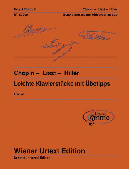 Band 5 der Urtext Primo-Reihe verbindet Pianisten des 19. Jahrhunderts: Frédéric Chopin, Franz Liszt und Ferdinand Hiller. Die technischen Ansprüche der Werke sind sehr moderat, ohne dabei stilistische Eigenheiten dieser Komponisten zu verleugnen.