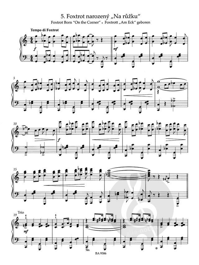 Außer diesen beiden 'Novitäten' beinhaltet die vorliegende Edition auch drei in den 1920er-Jahren in Policka komponierte und bereits im Album 'Werke für Policka' veröffentlichte Tanzstücke sowie den in Paris 1927 komponierten dreiteiligen Zyklus 'Weihnachten'.