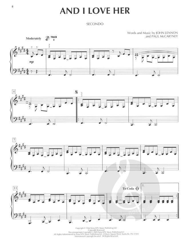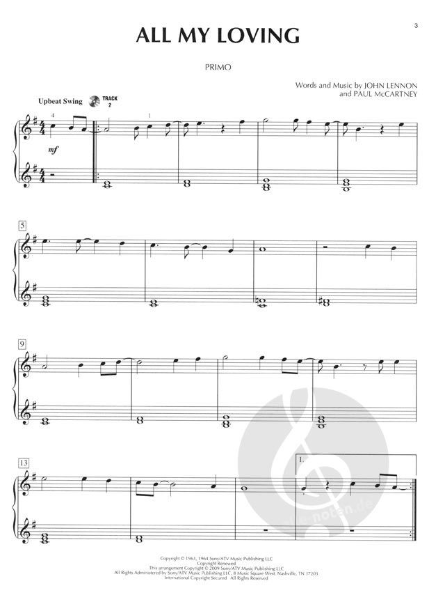 This great series comes with a CD that features separate tracks for the Primo and Secondo parts - perfect for practice and performance! 10 songs, including: All My Loving - And I Love Her - Can't Buy Me Love - Eleanor Rigby - I Want to Hold Your Hand - In My Life - Let It Be - Norwegian Wood (This Bird Has Flown) - Ticket to Ride - Yellow Submarine.