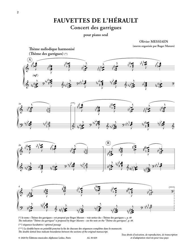 Fauvettes de l'Hérault - Concert des garrigues for solo piano is a 'concerto without orchestra' that blends reference to Claude Debussy, a thinly veiled homage to Yvonne Loriod, new birdsong from the Hérault region, and the vast palette of rhythm, timbre, and colour that are typical of Olivier Messiaen's musical universe.