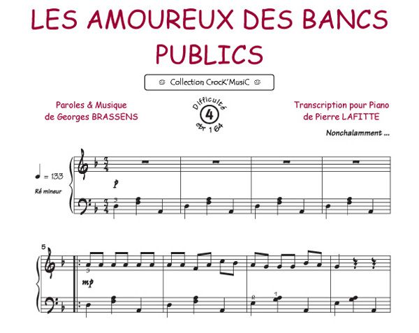 Diese Partitur stammt aus der Sammlung CrocK'MusiC, die aus Transkriptionen französischer Lieder für das Klavier besteht, begleitet von ihren Texten.