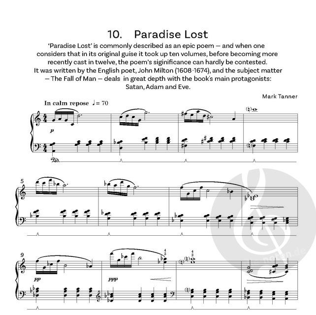 Faszinierende Klänge gehen von überall um uns herum aus - die Geräusche der Elemente, der Tiere und der Menschen, die ihrem täglichen Geschäft nachgehen. Es gibt auch exotische Anspielungen und etwas antike Symbolik in der Mischung, zusammen mit ein wenig Humor hier und da, um die Stimmung aufzulockern. Das Klavier ist ein so wunderbares Ausdrucksmittel, und durch sein Prisma musikalischer Farben können wir gelegentlich einen Blick auf uns selbst werfen, auf vertraute und weniger vertraute Orte oder vielleicht auf Träume, die wir erst noch haben werden.