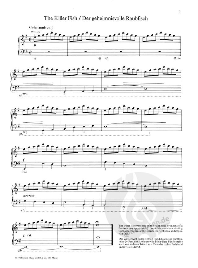 Originelle Sammlung von Stücken, von denen einige schon längst zum Kanon der Klavierausbildung gehören. Die Stücke sind in ansteigendem Schwierigkeitsgrad geordnet und fordern einen Ausbildungsstand zwischen einigen Monaten bis Ende des zweiten Unterrichtsjahrs.
