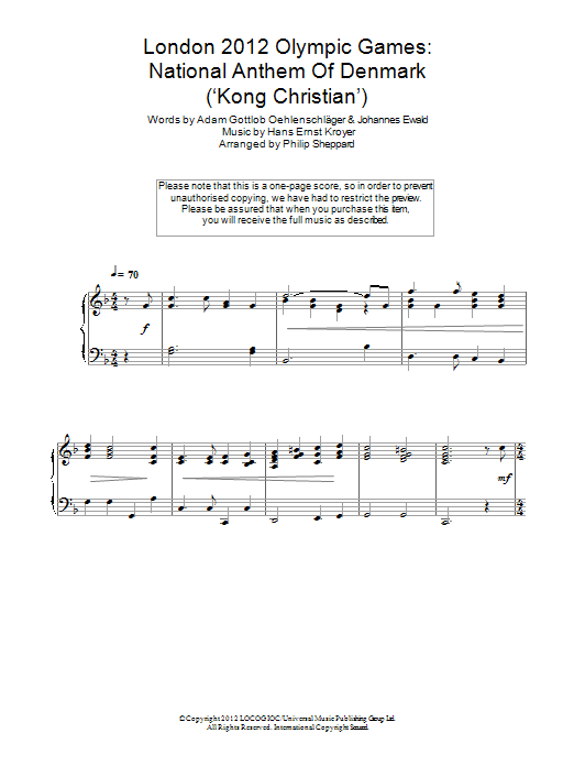 London 2012 Olympic Games: National Anthem Of Denmark