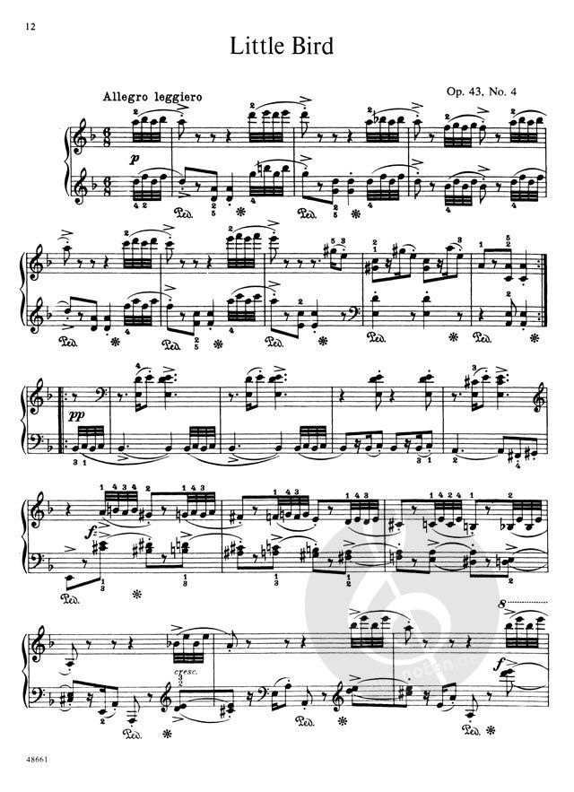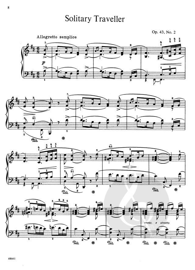 Contents: Album Leaf - Butterfly, Op. 43, No. 1 - Elegy, Op. 47, No. 7 - Erotik, Op. 43, No. 5 - Halling, Op. 47, No. 4 - In My Native Country, Op. 43, No. 3 - Little Bird, Op. 43, No. 4 - Melancholy, Op. 47, No. 5 - Melody, Op. 47, No. 3 - Solitary Traveller, Op. 43, No. 2 - To Spring (An Den Fruhling), Op. 43, No. 6 - Spring Dance - Valse-Impromptu, Op. 47.