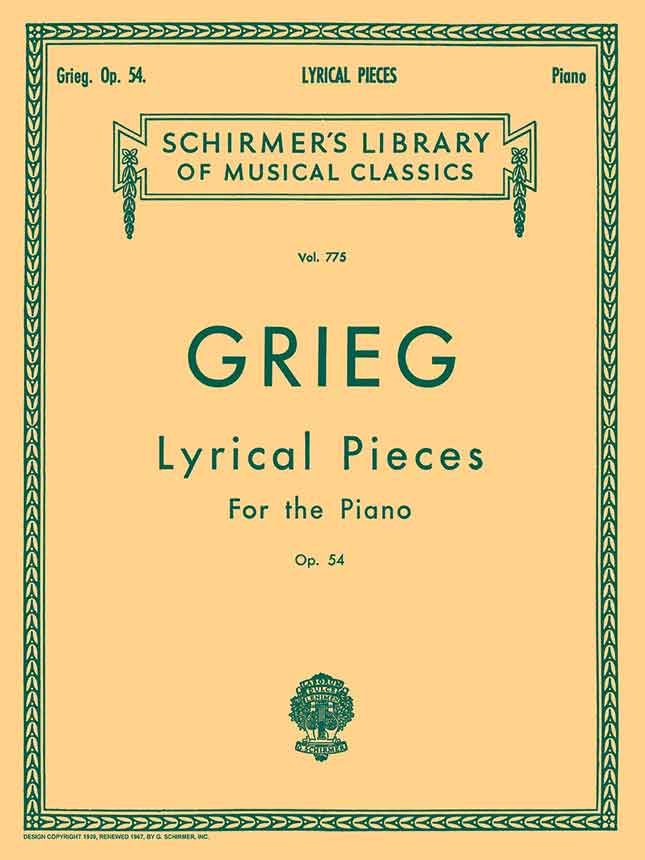 G. Schirmer edition of Grieg's Lyrical Pieces from Opus 54, which have been edited and fingered by Louis Oesterle. For Piano Solo.