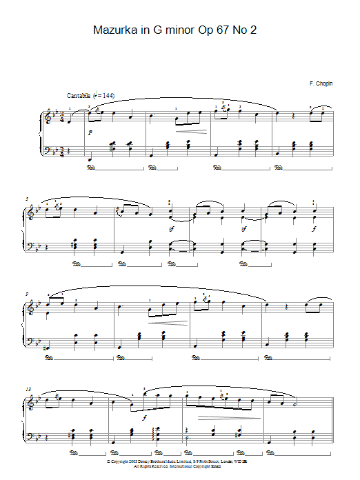 Mazurka In G Minor, Op. 67, No. 2