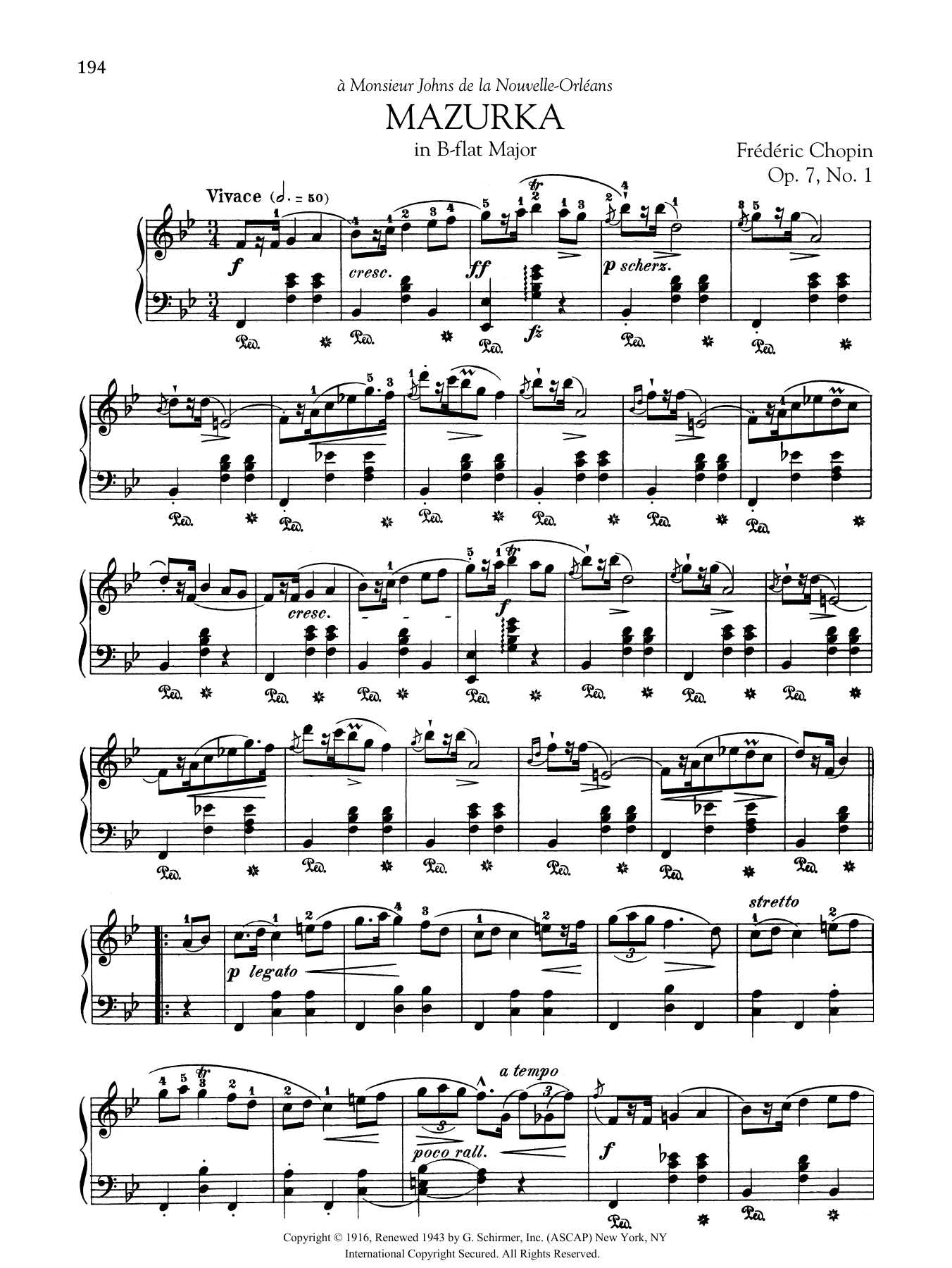 Mazurka in B-flat Major, Op. 7, No. 1
