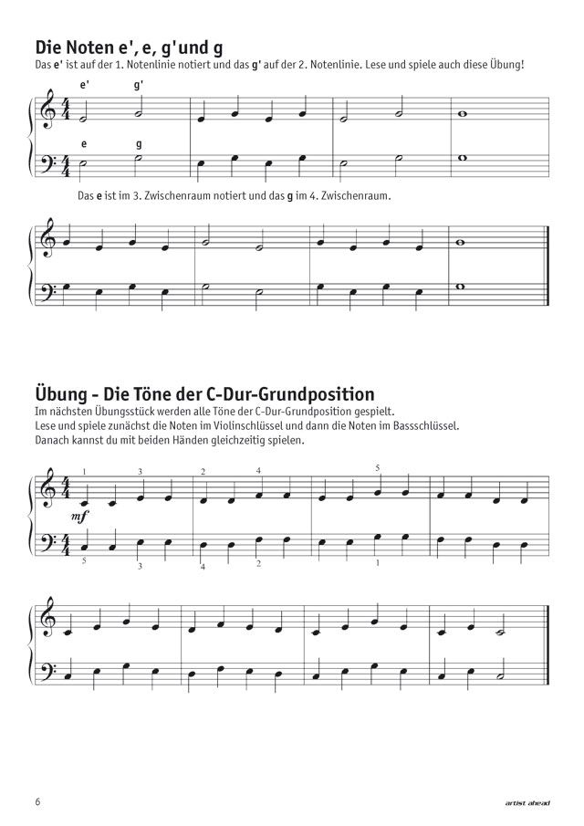 In diesem Übungsheft werden Noten beschriftet, gespielt und selbstständig eingetragen. Es wird immer wieder auf die Position der Noten im Notensystem hingewiesen, d. h. auf welchen Notenlinien und in welchen Zwischenräumen sich die jeweiligen Noten befinden. Es empfiehlt sich für die im Heft enthaltenen Aufgaben einen weichen Bleistift zu benutzen, damit ein Verbessern oder Wiederholen der Übungen möglich ist. Die Lösungen zu den Aufgaben befinden sich im hinteren Teil der Notenschule.