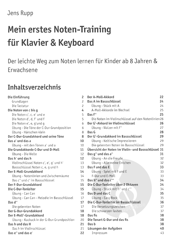 45 Übungen für Klavier, Keyboard & Orgel, für Kinder ab 8 Jahren & Erwachsene