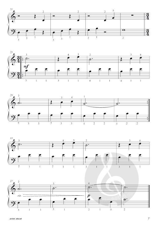 Zu Beginn sind die Stücke sehr leicht und werden im Verlauf des Buches ein wenig anspruchsvoller. Die verwendeten Tonarten sind die leichteren Dur-Tonarten C, F, G sowie die einfachen Moll-Tonarten Am, Dm und Em. Die Kompositionen haben jeweils eine Länge von zwei Seiten und enthalten schöne Harmonien sowie einprägsame Melodien mit überschaubarem Tonumfang. Trotz ihrer Einfachheit klingen diese kleinen Werke schön und vollständig. Dies erhöht die Motivation zu üben und kleine bis große Erfolgserlebnisse sind garantiert.