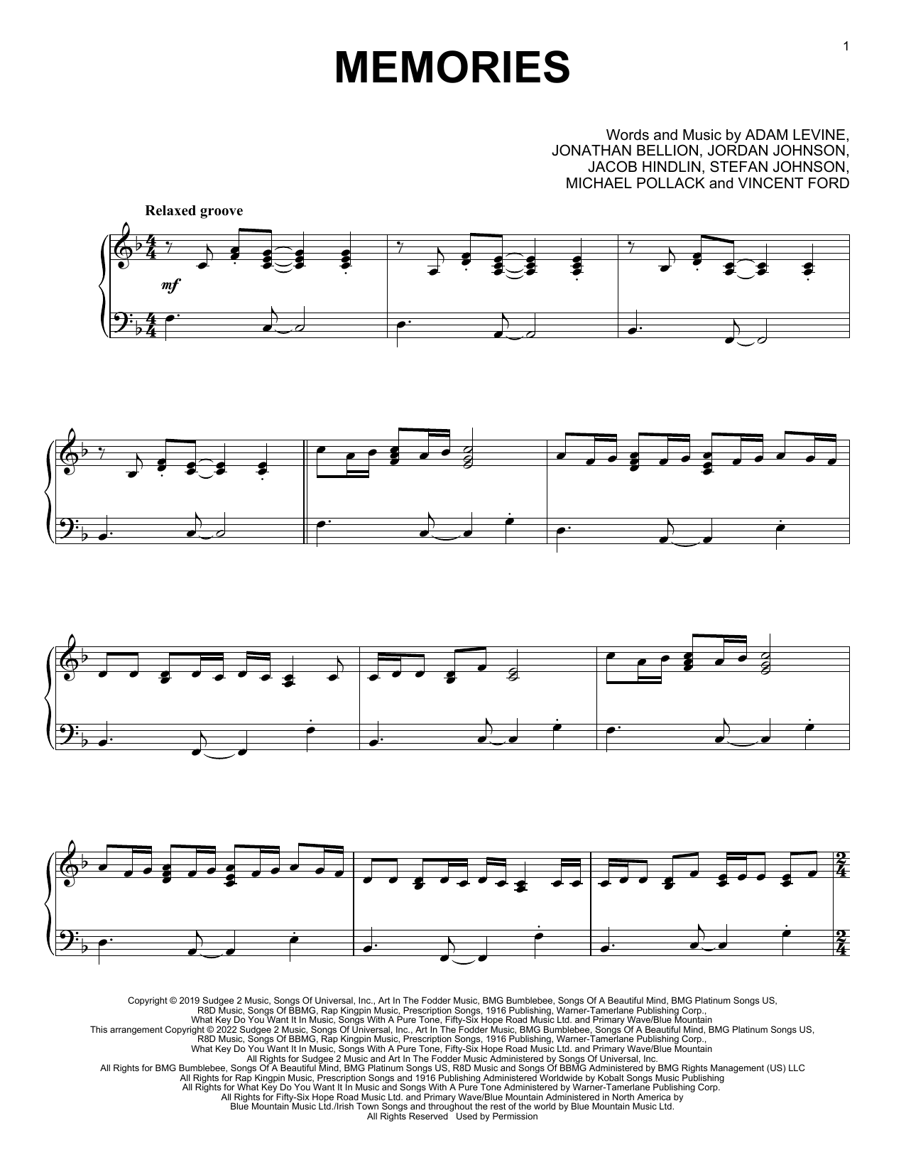- Komponist Jacob Kasher Hindlin, Adam Levine Vincent Ford Stefan Johnson