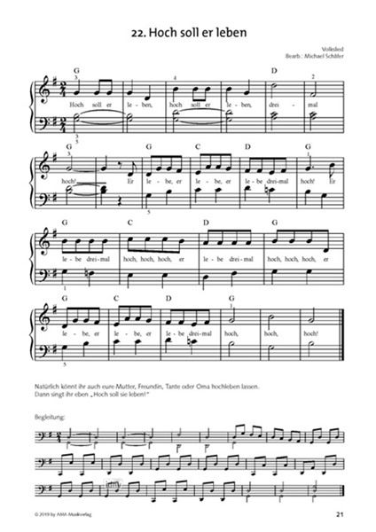 Eine Auswahl aus dem Inhalt: Amazing Grace, Die Gedanken sind frei, Greensleeves, Guten Abend, gut‘ Nacht, Schlaf, Kindlein, schlaf!
