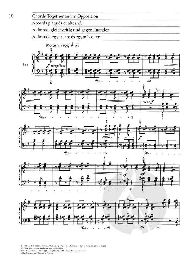 Dieser Zyklus von 153 kleinen Stücken ist wohl inzwischen zu einem Klassiker der Literatur für den Klavierunterricht und für das Klavier überhaupt geworden. Bartok sah in ihnen eine Reihe von Stücken in vielen verschiedenen Stilen, die alle zusammen eine eigene kleine Welt, die Welt der Kinder, repräsentieren. Stilistisch gesehen spiegelt sich in diesem Mikrokosmos der Einfluss der Volksmusik auf Bartoks Schaffen wider. Die verwendeten Rhythmen und Harmonien lassen eine Musik entstehen, die heute genauso modern ist wie zu der Zeit ihrer Entstehung. Die 153 Stücke des Zyklus sind in sechs Bänden erschienen, zusammengestellt nach ihrem technischen und musikalischen Schwierigkeitsgrad. Jeder Band enthält eine Einführung von Bartoks Sohn Peter. Englisch - französisch - deutsch - ungarisch.