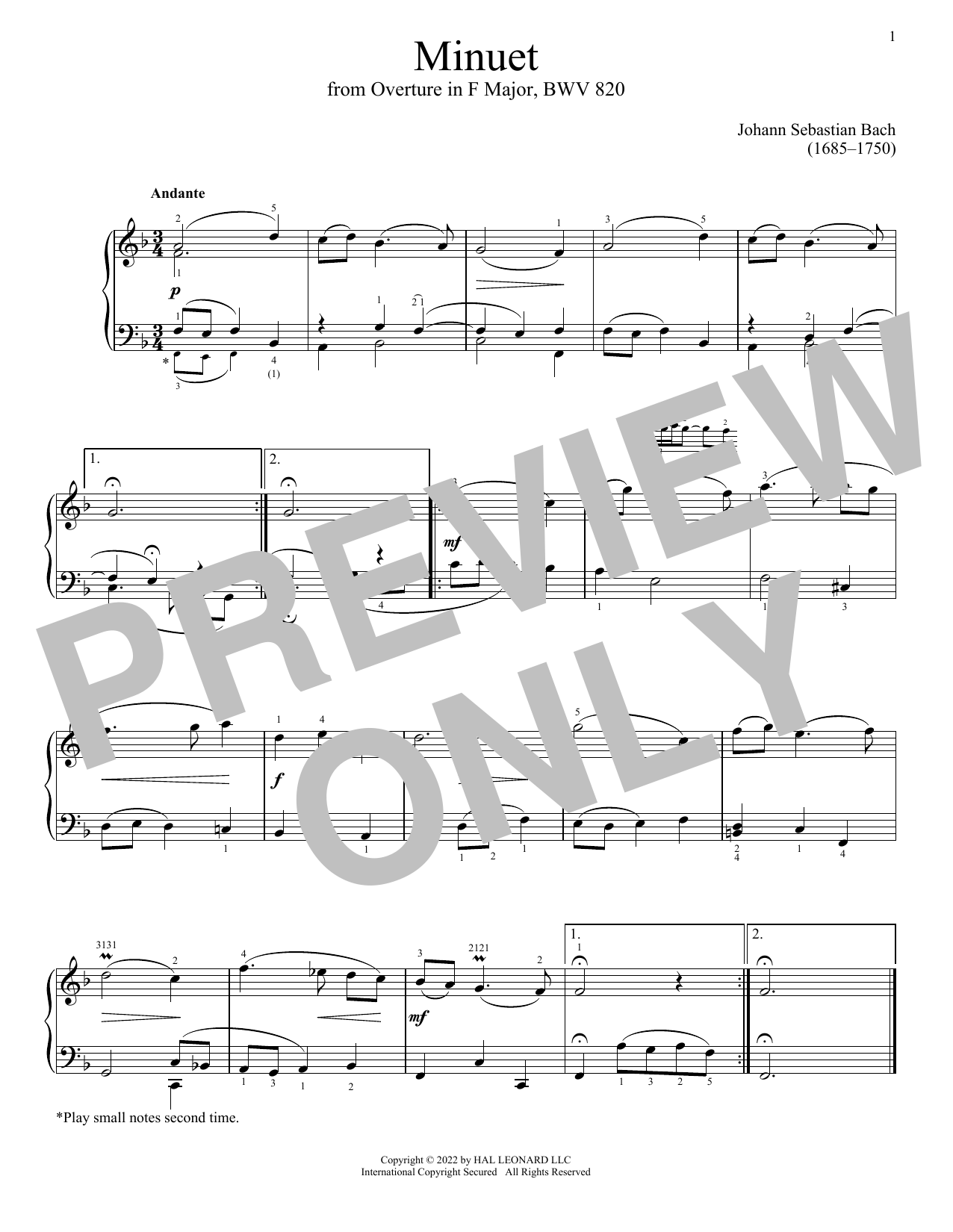 Minuet In F Major, BWV 820
