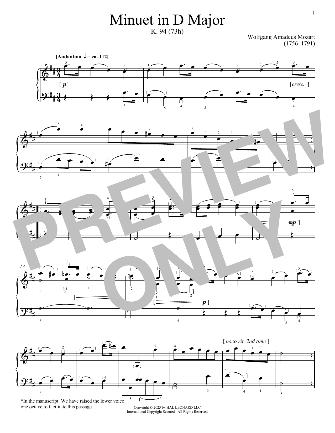 Minuet in D Major, K. 94