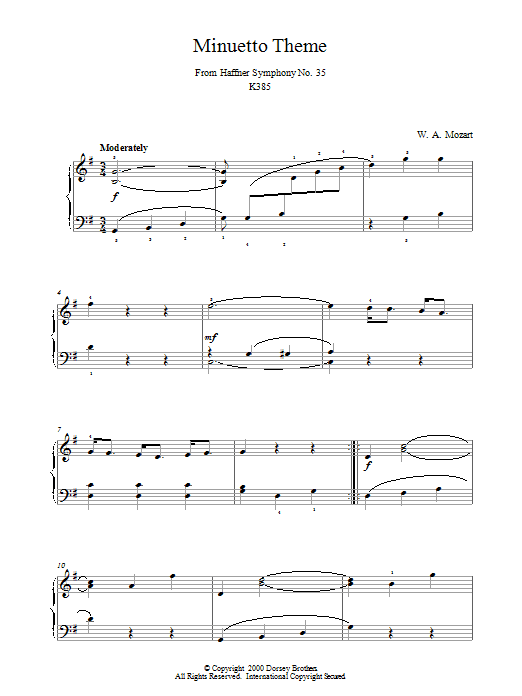 Minuetto Theme From Haffner Symphony No. 35 K385