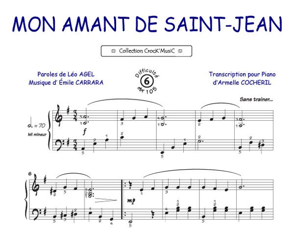 Diese Partitur stammt aus der Sammlung CrocK'MusiC, die aus Transkriptionen französischer Lieder für das Klavier besteht, begleitet von ihren Texten.