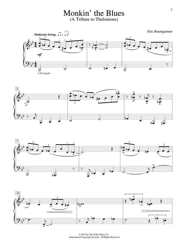So hip, so cool, and so rewarding to play! Monkin' the Blues is Baumgartner's nod to one of his favorite jazz idols. Key: B-flat Major. Later Intermediate Level.