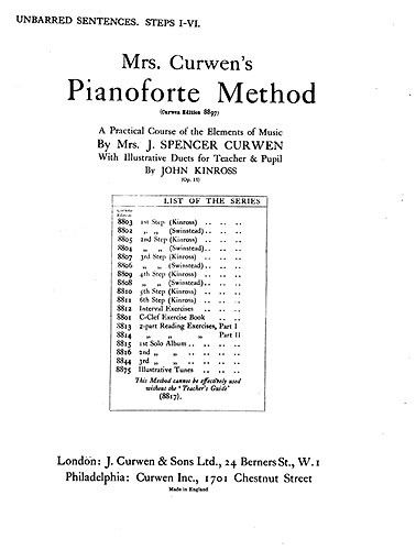 Mrs Curwen's Pianoforte Method Unbarred Sentences Steps I-VI