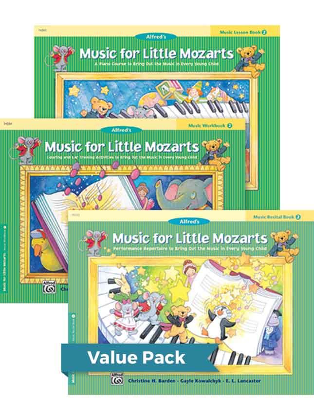 This Value Pack includes Music for Little Mozarts, Music Lesson Book, Music Workbook, and Music Recital Book, Level 2.