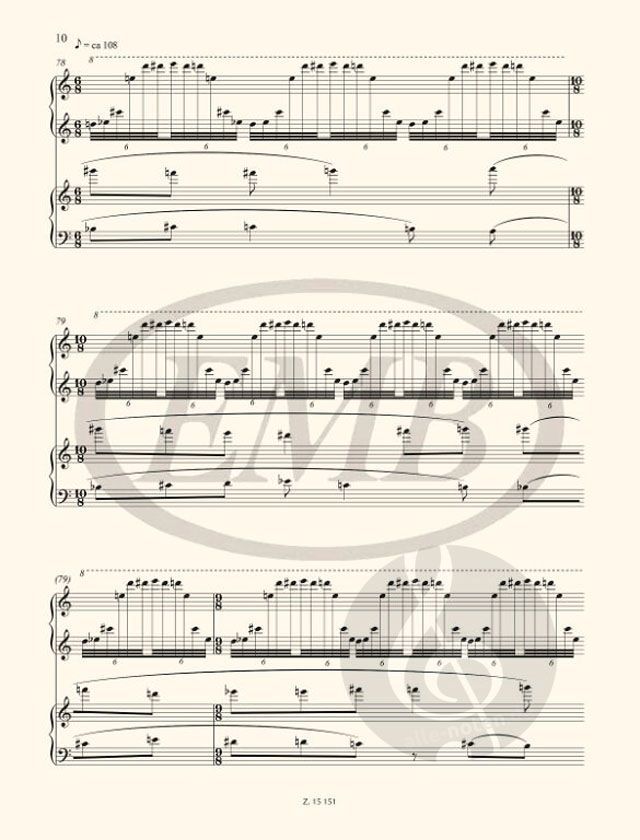 Bartók's music is of paramount importance for all Hungarian composers of the last hundred years: in the works of György Kurtág we also find open or hidden references to the great predecessor at several places. This transcription for piano duet of the first movement of Music for Strings, Percussion and Celesta, this large-scale fugue, can be considered a composer's study for understanding the work as well as an interpretation conveying Bartók's composition to the audience in a specific way. The transcription was made for György Kurtág Jr. , the son of the composer György Kurtág.