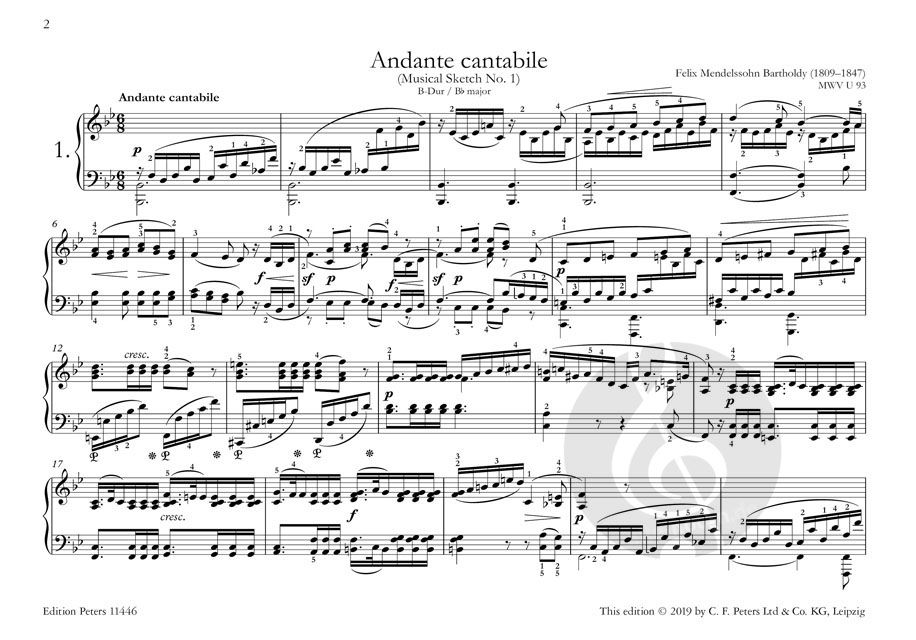 In Verbindung mit dem Mendelssohn-Haus Leipzig präsentieren wir eine weitere Ausgabe „musikalischer Kostbarkeiten“: Diese repräsentative Sammlung ausgewählter Klavierwerke Mendelssohns eignet sich hervorragend für das heimische Musizieren, wie schon Generationen von Laienmusikerinnen und Musiker seit dem 19. Jahrhundert diese wunderbare Musik schätzen und lieben lernten.