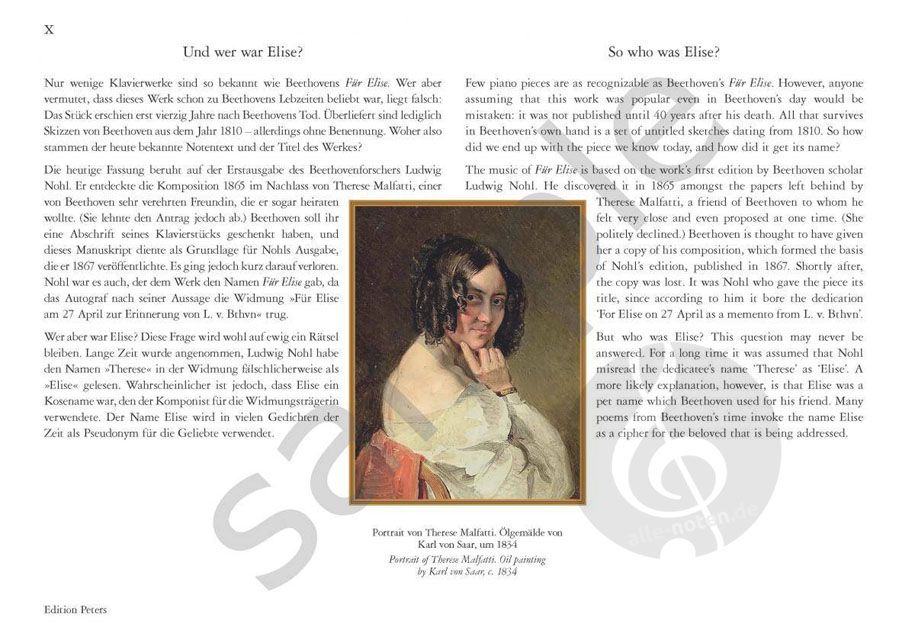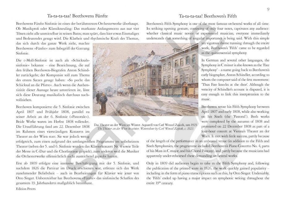 Die wunderschön gestaltete Ausgabe im handlichen Querformat ist reich bebildert und bietet darüber hinaus Einführungstexte zu allen Stücken. Die Edition Peters pflegte schon immer eine enge Zusammenarbeit mit Beethoven, u.a. als Herausgeber seiner Ersten Symphonie. Das Buch erzählt außerdem die faszinierende Geschichte der Verbindung zwischen der Edition Peters und dem berühmten Beethoven-Porträt von Joseph Karl Stieler.
