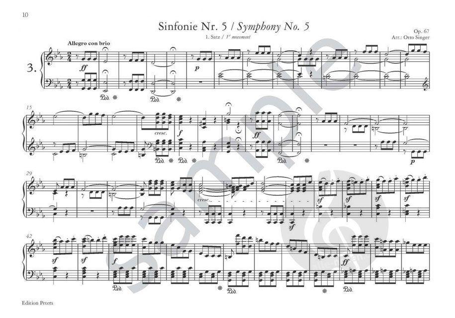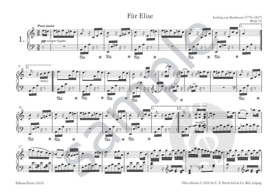 Neben den wohl berühmtesten Originalwerken für Klavier Für Elise und Mondscheinsonate (1. Satz) enthält der Band reizvolle Bearbeitungen von Orchestersätzen, darunter den Eingangssatz der Fünften Sinfonie und die Ode an die Freude aus der Neunten Sinfonie.