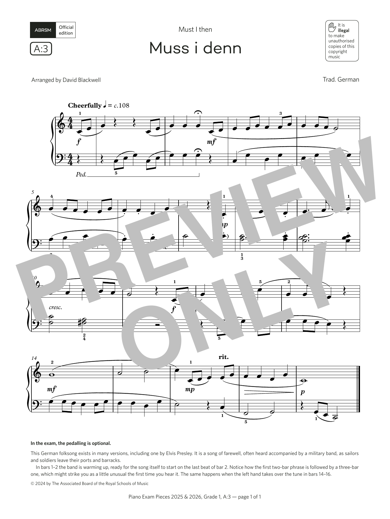 Muss i denn (Grade 1, list A3, from the ABRSM Piano Syllabus 2025 & 2026)
