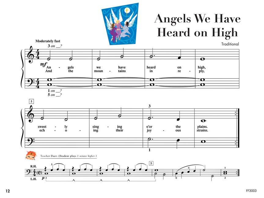 Christmas is an exciting time for the musical friends in Christmas Book C! Students play joyful melodies such as Dance around the Christmas Tree and Hark! The Herald Angels Sing as they continue to build pianistic skill and a love of music. Teacher duets expose students to more sophisticated rhythms and harmonies. Songs include: Angels We Have Heard on High - Dance around the Christmas Tree - Hark! The Herald Angels Sing! - Jingle Bells - Jolly Old St. Nicholas - Once in Royal David's City - Silent Night.