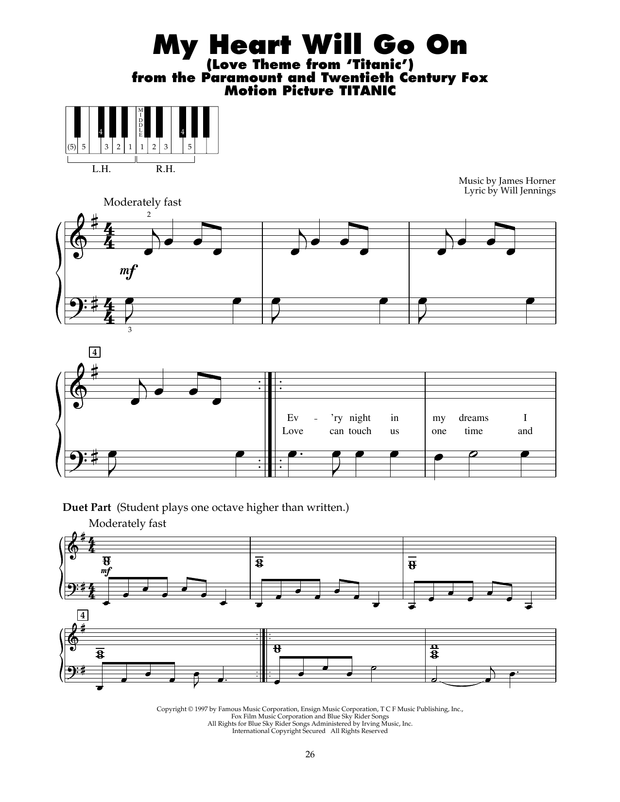 (Love Theme from Titanic) - Five-Finger Piano