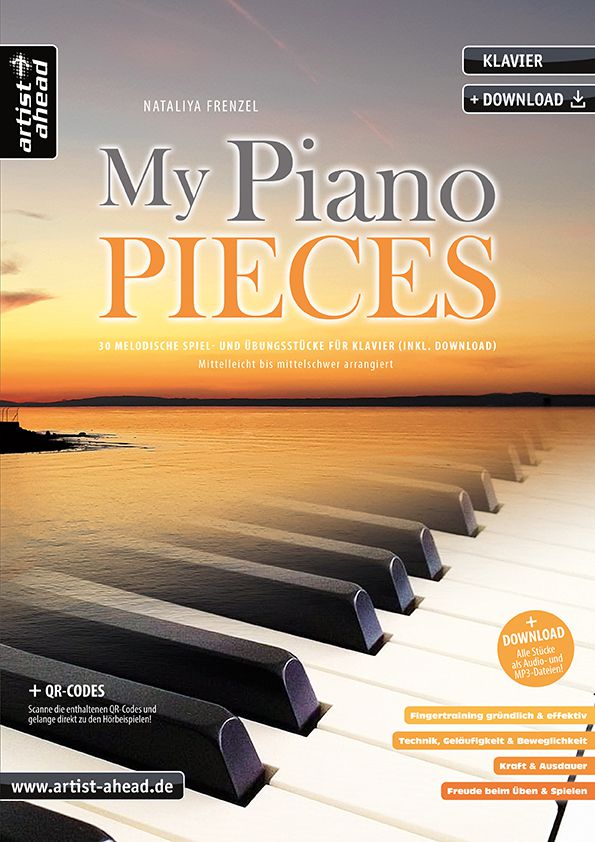Die mittelleicht bis mittelschwer arrangierten Klavierkompositionen sind dabei keineswegs nur 'trockene' Etüden, sondern ausgesprochen wohlklingend und gehen durch ihre melodische Struktur leicht 'ins Ohr'. Die Motivation, die Klavierstücke gerne zu üben und zu spielen, wird dadurch enorm gesteigert. Abgesehen von den rein technischen Aspekten, geht es vor allem auch darum, die musikalische Ausdrucksfähigkeit wie Phrasierung und Dynamik zu optimieren und somit zu einem schöneren Klangergebnis zu gelangen. Die Stücke sind mit ausführlichen Fingersätzen und Pedalbezeichnungen versehen und für den Klavierunterricht, zum Selbststudium aber auch für das häusliche Musizieren bestens geeignet. 'My Piano Pieces' - Freude am Üben & Spielen!