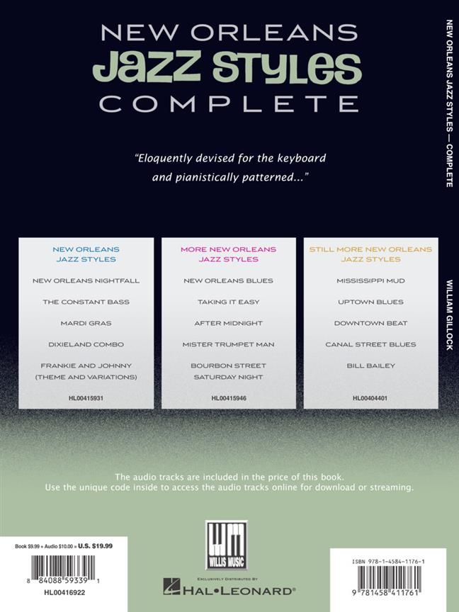 Gillock's New Orleans Jazz Styles have been a repertoire staple since the 1960s. All three books are now available in one - all 15 original piano solos together in one collection! Comes complete with an enhanced Online Audio that includes practice and performance tempos, AND downloadable MIDI files.